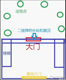 图丧尸围城,地形如图。城墙好像画大了,实际墙外比较空旷,boss强烈建议拉到外面打,墙内障碍太多会死的很惨。小怪可以集中在城门口打。