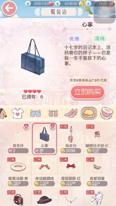 头发22钻+上衣13858金币+下装12474金币+制服袜8537金币+鞋子8617金币+提包26钻