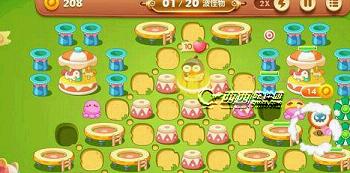 3.接着就是在右侧继续放两个章鱼,依次升满级。很快右侧的障碍物清除了一半。