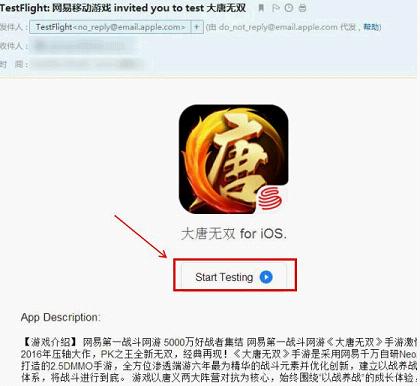 二、苹果官方TestFlight下载《大唐无双》手游流程: