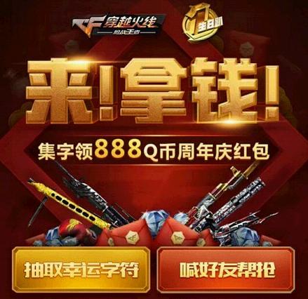 cf手游周年庆远不止送枪这么简单,官方甚至还开启了888Q币的抽奖活动,玩家只需要召集战友收集字符就有机会抽奖,那么cf手游周年庆抽888Q币的活动在哪,下面就是西西为大家分享的活动地址,希望大家喜欢。