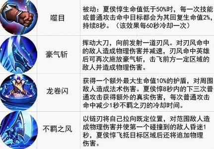 ◆夏侯惇是一名很难被击杀的战士。技能控制非常霸道,3技能不管是先手开团还是逃生都非常实用,功能性极强。使用大招前建议给队友提示,免得队友跟不上就尴尬了。