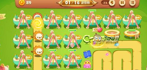 2.上图的就是小编的地图,小编首先在中间位置,萝卜的附近放了一个章鱼和一个冰锥,开始攻击障碍物,前期的怪物也会被清除的。