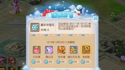 2、每天可以使用金币兑换嘉年华雪花的上限为100片;