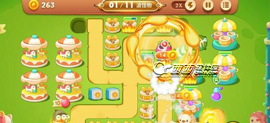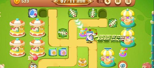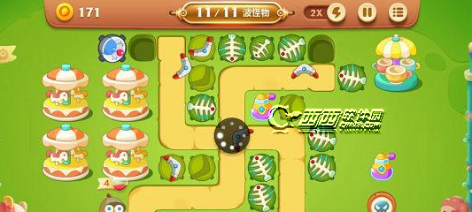 1.这关没有减速炮,所以玩家们要注意了,最好是用鱼刺来辅助,回旋镖作为输出炮塔来打。