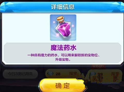 魔法药水和宝物是不可分割的~宝物要用魔法药水来升级哟~所以离开宝物,魔法药水就没有用途了,离开魔法药水,宝物就不能升级啦。