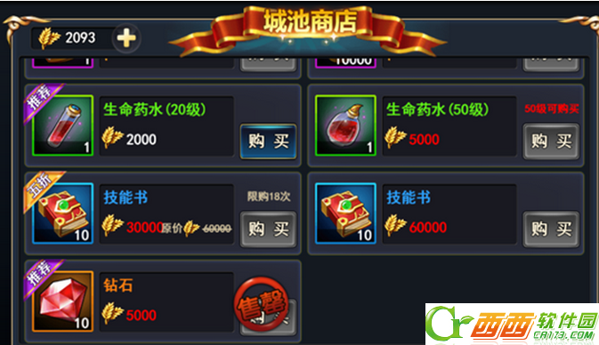 在城池商店中可以购买技能书,每天可以购买20次,购买是需要支付粮食,而粮食可以通过升级建筑来获得,同时也可以通过掠夺来获得。