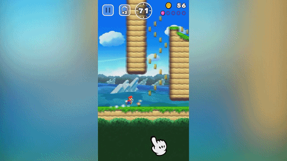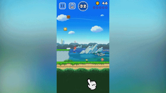 正如宫本茂描述的那样,《超级马里奥跑酷》是一款自动奔跑式的动作游戏。换句话说,即使你不动手指角色也会向前奔跑。
