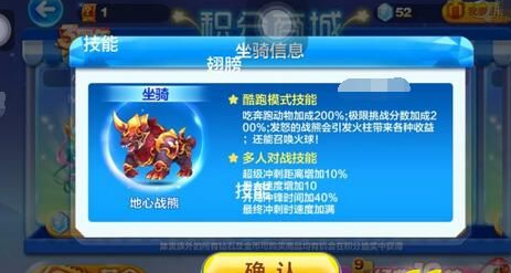 天天酷跑地心战熊的技能是吃奔跑动物加200%分,极限挑战米数加成200%;发怒的战熊会引发火柱带来各种收益;还能召唤火球。在巅峰挑战完成可以获得更多分数。皇家狮鹫破坏障碍物加成8000分,飞星得分加成300%;非冲刺破坏障碍物能变换高分圣杯,还能召唤黄金印记爆分能力比起地心战熊的加成更多,实用性更强!