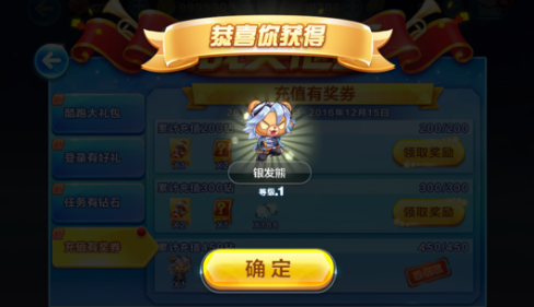 6、累计充值300钻石,送十连抽券*2+黄金奖券*1+钻石*188