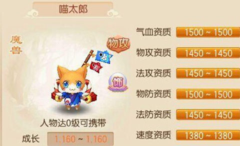 喵太郎的六大资质都是固定的,所以就不存在用炼骨符来提升其资质,想要提升资质只能通过进阶,喵太郎达到80级20个魔兽碎片就可以对喵太郎进行进阶,提升其资质。
