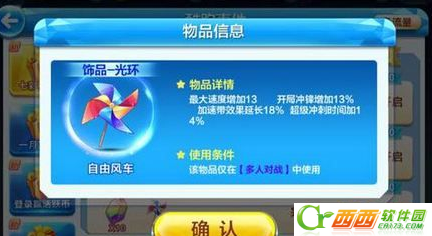 自由风车使用自由风车最大速度增加13,开局冲刺增加13%,加速带效果延长18%,超级冲刺时间加14%。
