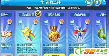 彩虹流星可增加最大速度13,开局冲锋增加12%,加速带效果延长17%,超级冲刺时间加14%。