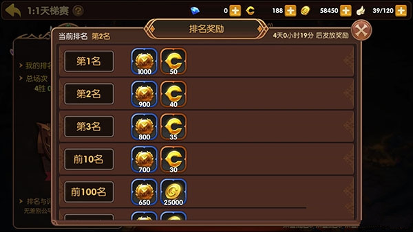 3、每周会根据排名通过邮件发送排名奖励。(各位玩家请多注意在聊天框的旁边会有一个邮件的标识哦)