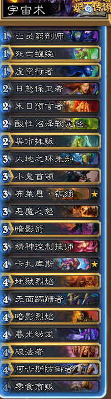 先后手都留:亡灵药剂师,死缠,虚空行者,末日预言者,软泥,李奶奶,恶魔之怒,暗影剑,雷诺。