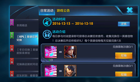 12月13日~12月18日等级≥4的玩家每日登录可得总决赛音符*3,参与对战可掉落音符(每日上限3个);