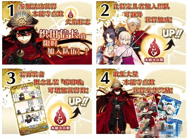 通过将特定从者编入队伍,即可增加『本能寺点数』的获得数量!