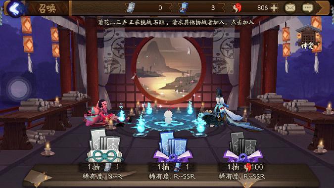 在神龛中,可以分解式神,御札用来兑换强力的式神或者皮肤