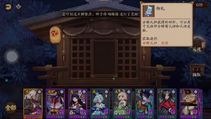 返魂产生的御札,可按一定比例兑换为其他式神及道具。