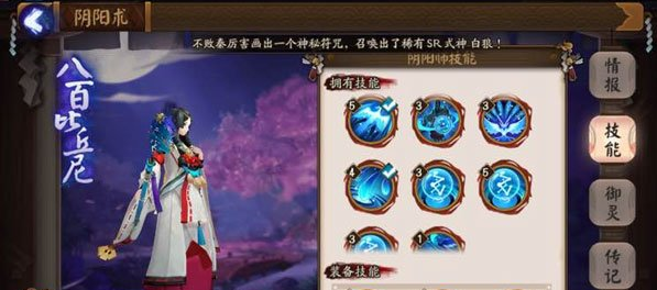 另一个技能栏可以用【预知】保护队友,在某些时候还可以节省出一个奶妈位置。【星陨】技能也是不错的选择,降低对手生命上限可以对四破势和鬼使黑这样的式神有很好的帮助。