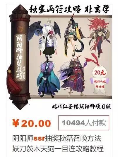 想必喜欢玩阴阳师的朋友对于抽卡是又爱又恨的,小编也才知道淘宝上有20块一套的“阴阳师画符/抽卡”攻略,并且已经有了5位数以上的销量。出于职业的敏感性,我顺手去淘宝搜了一下到底有没有商家在卖。这一搜不要紧,搜出一个与此无关但更厉害的东西——《阴阳师》SSR抽奖秘籍。