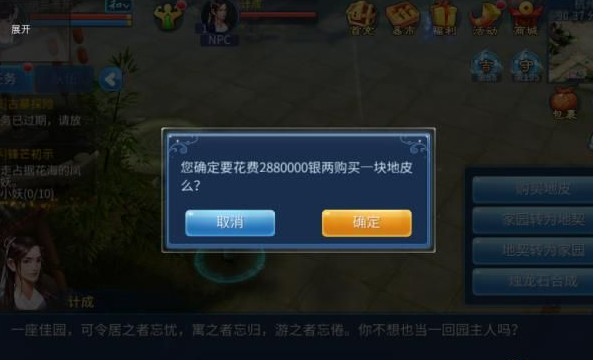 2.除了花费288W有银两购买地皮外,之后也可以在易市购买玩家装饰后的二手房,这个区别也就是一手房和二手房的区别。