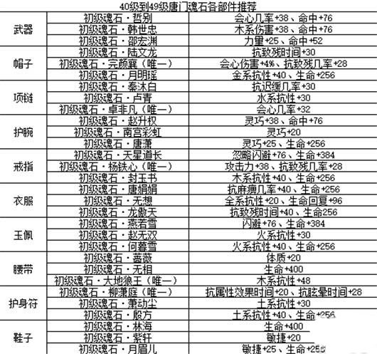 剑侠情缘手游唐门40级魂石搭配可参考如下: