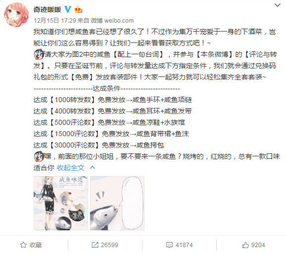 奇迹暖暖苹果联邦的套装中,有着一套很诡异的套装,那就是很多暖粉都十分想要获得的咸鱼套了,不过这套咸鱼套的套装具体的获得方法,暖暖也是在微博中放出了咸鱼套的获得方法,那么我们就一起来详细的了解一下奇迹暖暖咸鱼套装的具体的获得方法吧。