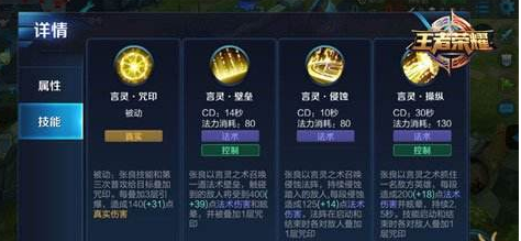 三技能(言灵·操纵):三技能是张良的核心技能,超长的控制时长与锁定控制,配合任意英雄都可以打出完美伤害,但还是需要注意敌方控制技能。