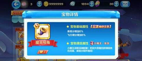 魔王号角和西天佛典都只能通过降妖秘境获得,无法直接碎片合成。这个宝物的满级特性是吃到大恶魔后能够获得磁铁效果,额外增加表现分。在单人模式中小魔王非冲刺状态狩猎到大恶魔能召唤守护结界,有清屏效果,破坏障碍物还能带来魔心石,这时如果有魔王号角触发的磁铁效果,得分瞬间爆炸!