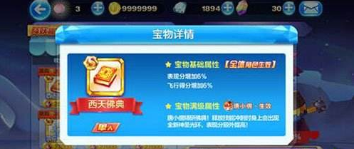 唐小僧想要在单人模式中取得比较高的得分比,西天佛典是必不可少的,满级的宝物能在唐小僧释放技能时提供额外的表现分加成!这款宝物比唐小僧的另一款专属九龙禅杖更加的重要,有唐小僧的小伙伴尽量不要错过哦!