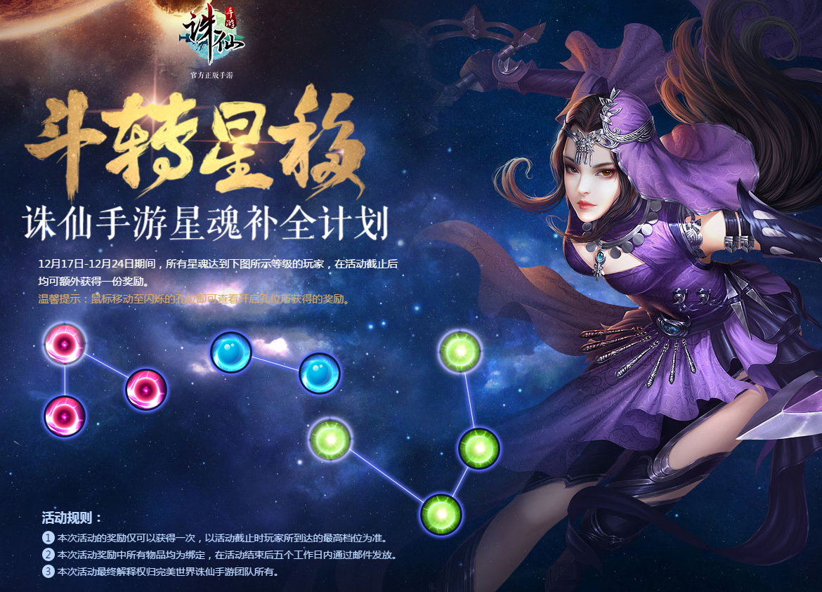 诛仙手游星魂补全计划,斗转星移福利活动详解。诛仙手游官方启动了最新斗转星移星魂福利活动,极品大礼等你拿。下面跟着西西小编一起来看吧。