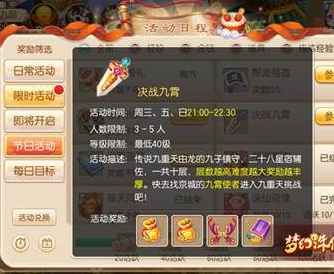 决战九霄作为每周三、五、日晚间开启的限时活动虽然9点就会开放场景地图,但是玩家想要真正进入九重天还需等到9点10分(其中的10分钟时间玩家会在九霄等待区逗留),所以当9点的活动开启时玩家没必要急着参与活动(该挂机的挂机,该组队的组队),等到9点10分再参与进去也不迟。
