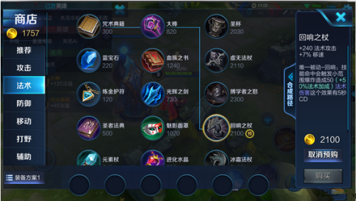 从系统推荐、人气方案到大神方案。装备搭配方案从1套扩充到3套,玩家可以根据从多种途径获得不同的装备搭配方案并且在局内快速的购买使用。然而,有一个关键的问题却始终没有解决——装备的选择,是需要根据局内情况的不同而动态选择的。例如,当敌方的ADC非常强势时,作为一个脆皮法师可能需要把惯用的秘法之靴换成影忍之足;当己方陷入劣势时,可能需要优先出一件肉装来保证团战不会被秒……等等,这样的需求显然无法通过在局外预先设置好的多套装备搭配方案来满足。因此,经过研究之后,我们决定使用“装备预购”这样的方式来让玩家的局内出装更加灵活易用。