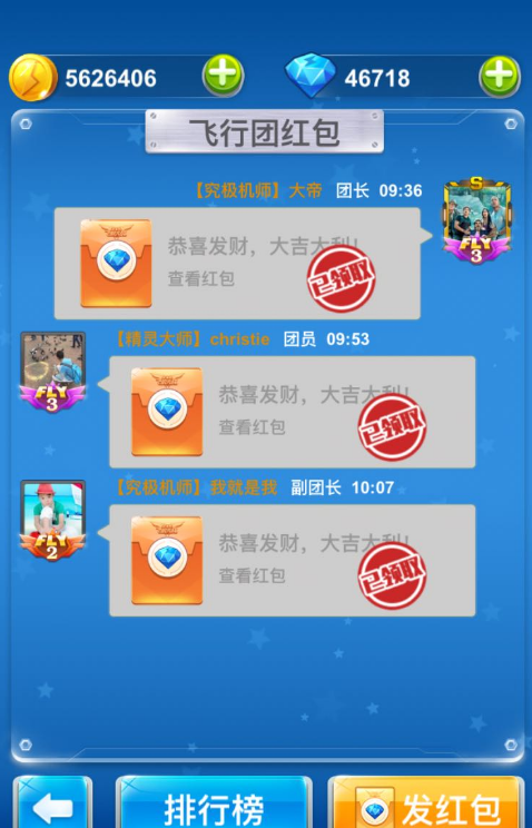 当然玩家们也可以发红包哦,选择一个时间然后发放红包,不过这只能在飞行团中使用哦,只要抢到红包的玩家就可以获得钻石咯,喜欢的玩家赶紧到飞行团福利中领取吧。