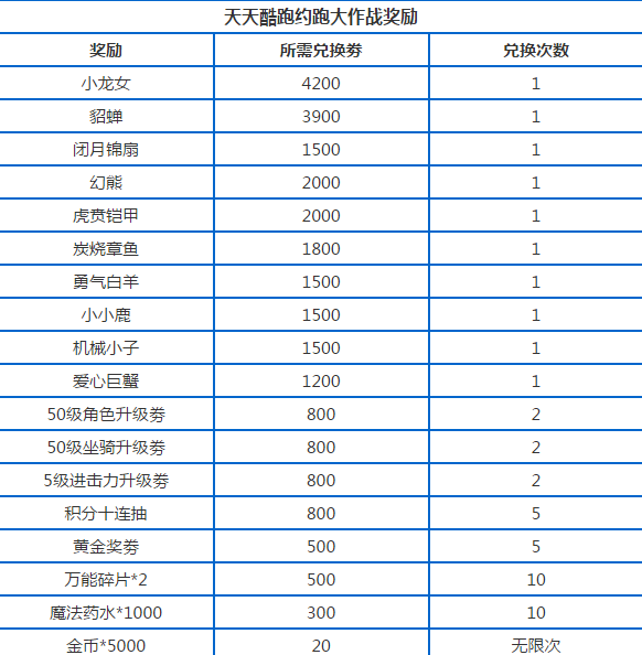 约跑大作战兑换表一览