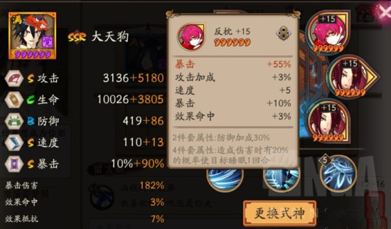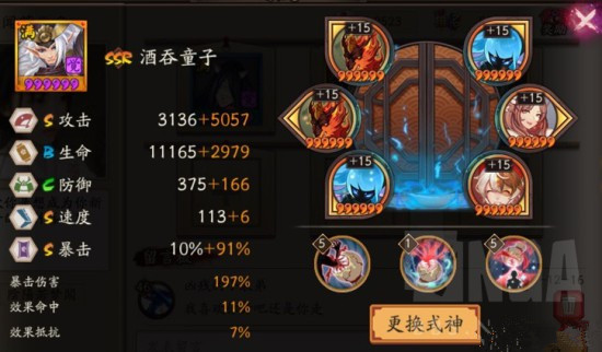 对于酒吞这类不太吃御魂的式神,完全可以使用2件套散件来堆属性: