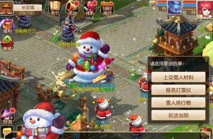 玩家可以通过完成日常活动、找投放NPC“玩雪小猴”以及在帮派频道内抢材料等3种方式获得堆雪人的材料,到本帮所属阵营的大雪人处上交材料获得奖励,并为本帮增加材料积分。