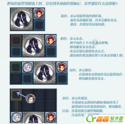 把角色放置到棋盘上,会看到不同颜色的标记。