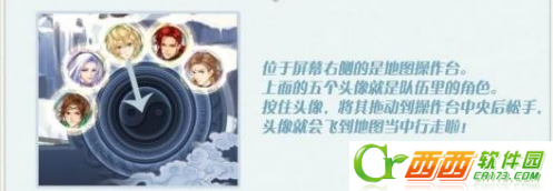 位于屏幕右侧的是地图操作台,上面五个头像就是队伍里的角色,按住头像,将其拖动到操作台中央后松手,头像就会飞到地图当中行走啦!