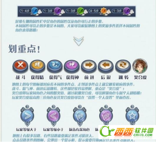 不同属性可以走的步数是不同的,大家可以根据地图上的奖励事件选择不同属性的角色来带路。