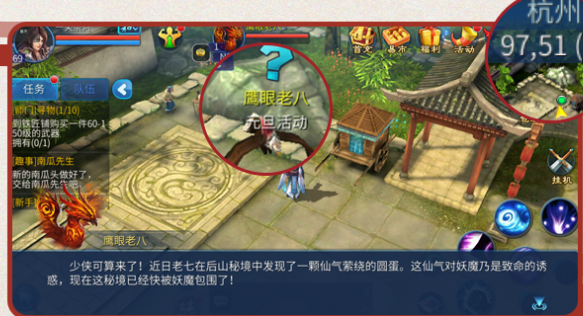 鹰眼老七在昆仑后山发现了一颗奇异的圆蛋,引得众多妖魔前去争抢,望少侠于12月29日—1月4日活动期间速去保卫圆蛋!≥50级的少侠方可参加,需至少3人组队进入副本。