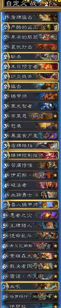 对防战、骑士:基本上对阵控制卡组全是优势对局,爆牌和脏鼠要尽可能发挥大的用处。