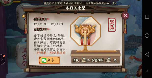 玩家或其好友挑战美食店铺,挑战成功即可为玩家赢得10张料理券.