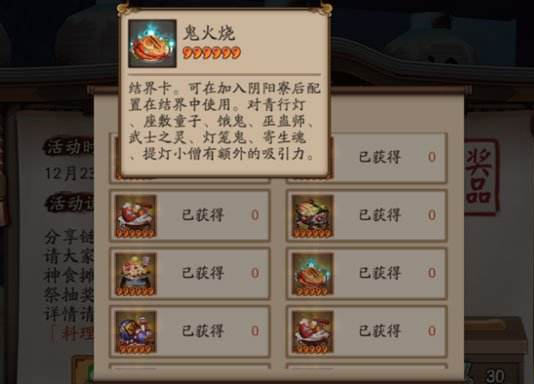 美食结界卡是可以对相应的式神有特定的吸引力的结界卡,也会随机获得与其对应的式神碎片,但是在这里,西西小编建议大家可以适当的合成你们的美食结界卡,会收获不同的惊喜(不会掉级)