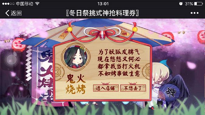 3、然后从自己的微信中打开分享的链接,就可以进入到阴阳师美食祭的活动页面了。