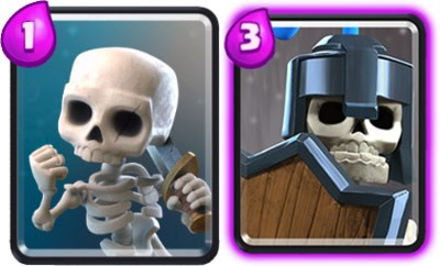 1.骷髅兵这张卡牌可以召唤3个小骷髅,有着很好的防守性,当敌方有单独的卡进入我们的公主塔范围内时,可以利用骷髅兵作为目标来配合公主塔斩杀,如(火枪手/迷你皮卡/重甲亡灵)。