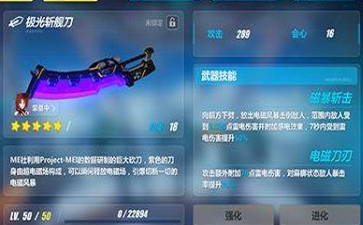 电磁刀刃:攻击额外附加雷电伤害,对麻痹状态敌人暴击提升。