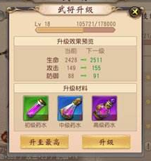 1.武将升级:武将升级,需要使用武将经验药水升级,普通打怪武将不会获得经验