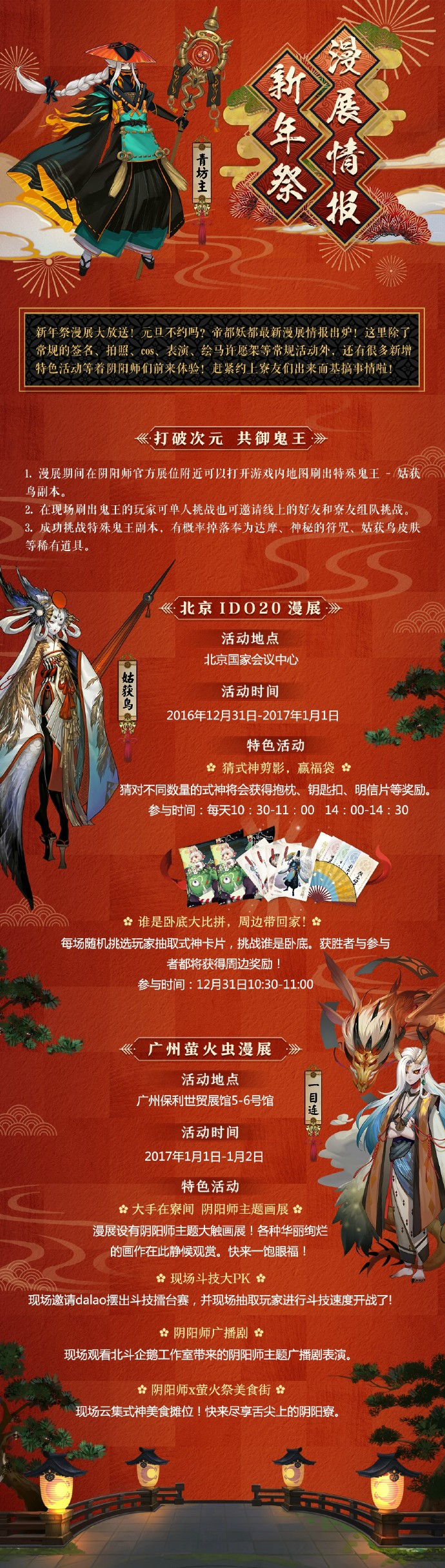 而阴阳师北京和广州元旦漫展除了特殊的鬼王姑获鸟副本之外,还有非常多的阴阳师周边以及玩家抽式神靠等活动可以参与。
